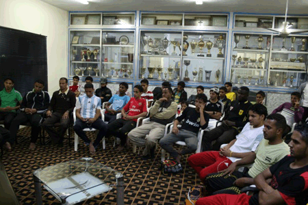 التقى مساء أمس الأول الأخ رياض عبدالجبار الحروي نائب رئيس نادي الصقر الرياضي في تعز لاعبي الفريق الكروي الممتاز الذي يستعد لخوض غمار منافسات دوري الثانية التي هبط إليها بقرار اتحادي، في خطوة ذات دلالة حريصة من قبل إدارة النادي للمتابعة والوقوف على أوضاع الفريق .